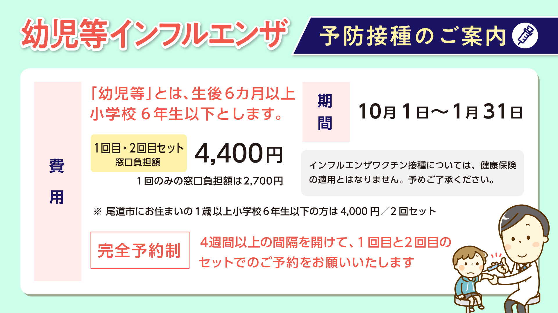 【要予約】インフルエンザ予防接種(幼児等)のお知らせ